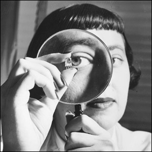 Figure 2. February 1952 -- One of RCA's laboratory technicians gives a final inspection of the strengthened version of its new transistor.