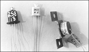 Figure 9. Unusual early junction transistors. Left to right: an experimental GE tetrode or 4-lead device, ca. mid-1950s;