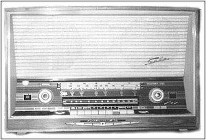 Figure 1. The Saba Model 400/10T table radio.Depressing the "Automatic Off" button allows the listener to tune stations manually. The reception of roughly tuned stations can be improved by depressing the button again and automatic tuning takes over -- sort of a primitive AFC, but effective on both the AM and FM bands.